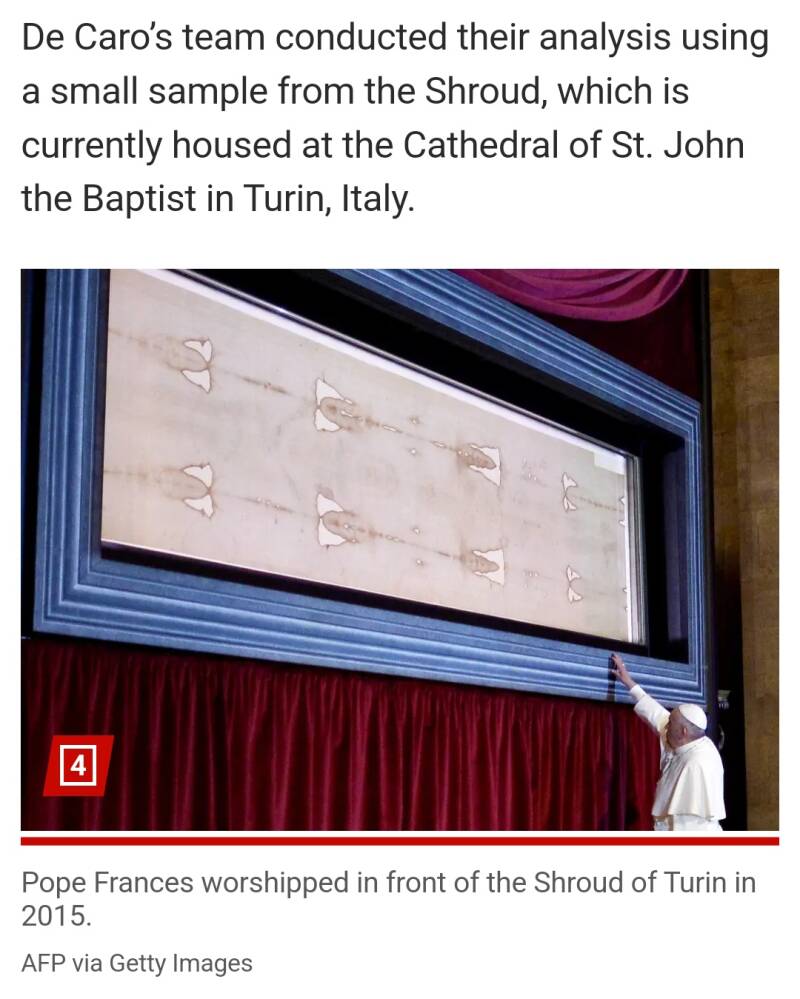 And you cannot invent it: BOTH reports - the one on the TURIN SHROUD and the one on the ISIS claims - showed each object of interest laid out in large hung up on the wall in a retangular shape in order to "study" them well: The Turin Shroud and the "letter of confession" from ISIS, as if to plant a next link between the two into the viewer`s minds.!