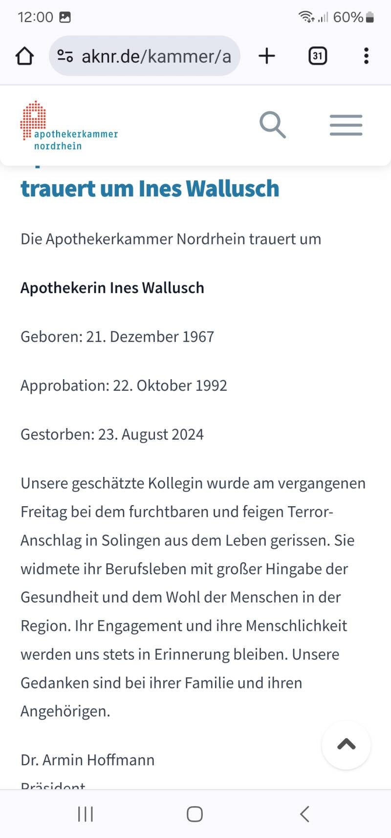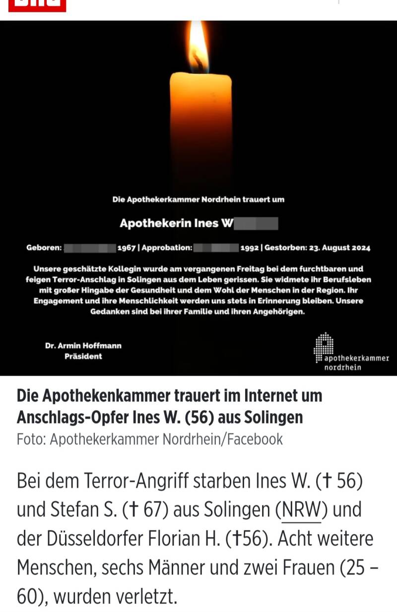 And see and behold Wednesday brough further news about the female victim: 56 year old Ines W. (whole name: Ines Wallusch). "Wallusch" comes from Valentine - "strong and HEALTHY".